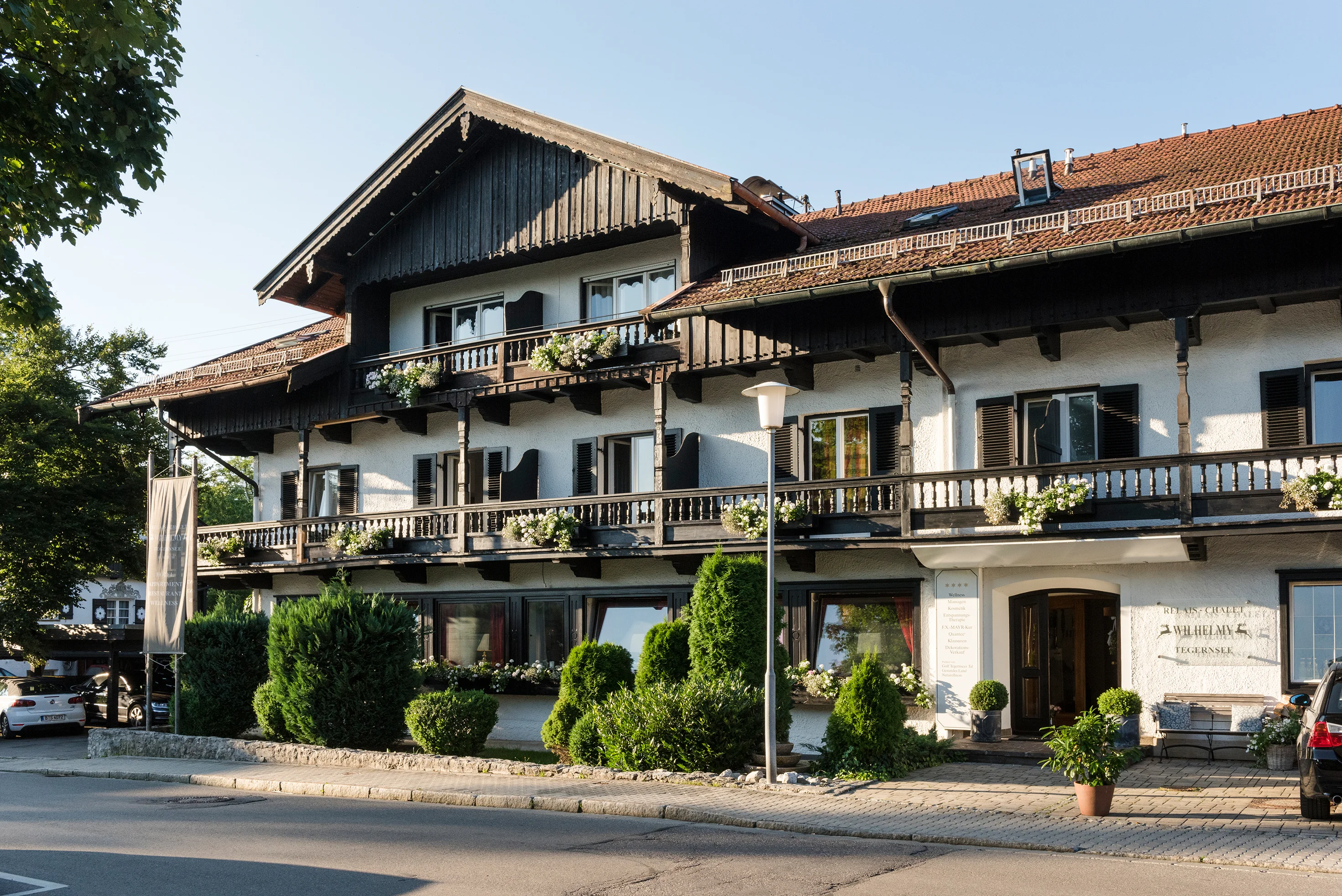 Eine Tagung in ausgewählter Runde – ein Meeting für konzentrierte Besprechungen mit bis zu 30 Personen – Ansprüche, die einem naheliegenden und gleichzeitig ruhigen Umfeld gerecht werden. Unser neues, exklusives ALM CHALET im idyllischen Garten des RELAIS-CHALET WILHELMY lädt über die Holzveranda und die gemütliche Lobby mit Kamin ein, den hochwertig ausgestatteten Veranstaltungsraum zu betreten. Idyllisch am Tegernsee Nur wenige Gehminuten vom Zentrum Bad Wiessees entfernt, in einer ruhigen Seitenstrasse gelegen. Mit Blick auf die Tegernseer Berge. Sehr gute Erreichbarkeit kombiniert mit ruhiger Idylle der Berge. Vielseitig und individuell Individuelle Betreuung mit persönlichem Service. Die Küche geht auf Ihre Wünsche ein und die Hausherrin berät und betreuut Sie persönlich bei Planung und Umsetzung Ihrer Veranstaltung. Feiern und Tagen im eigenen Haus Das Alm-Chalet mit dem großen Seminarraum und dem Foyer im Erdgeschoss und die Suite im ersten Geschoss mit 2 Schlafzimmern steht exklusiv zur Verfügung. Die unmittelbare Nähe des Haupthauses ermöglicht weitere Unterbringungsmöglichkeiten.
