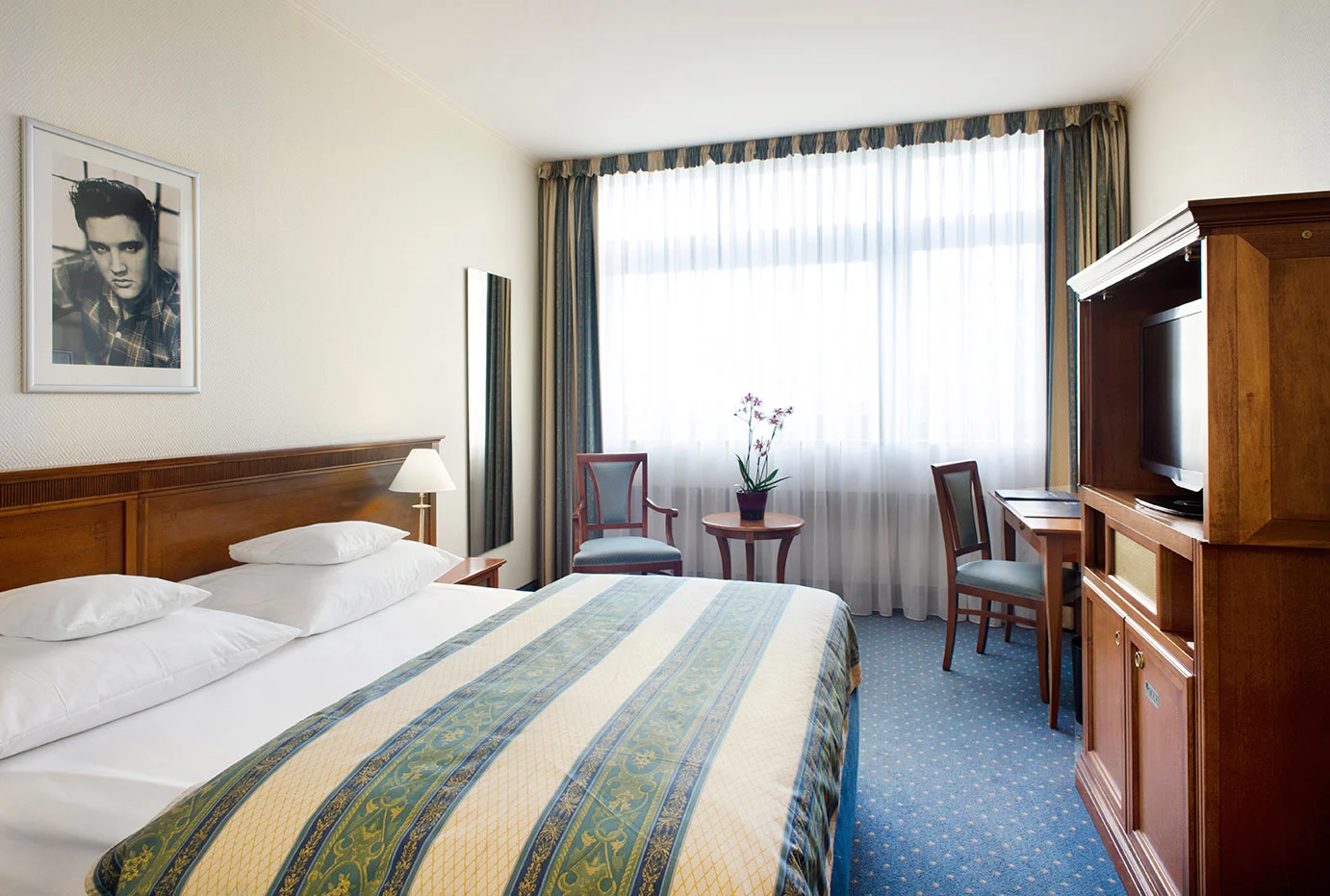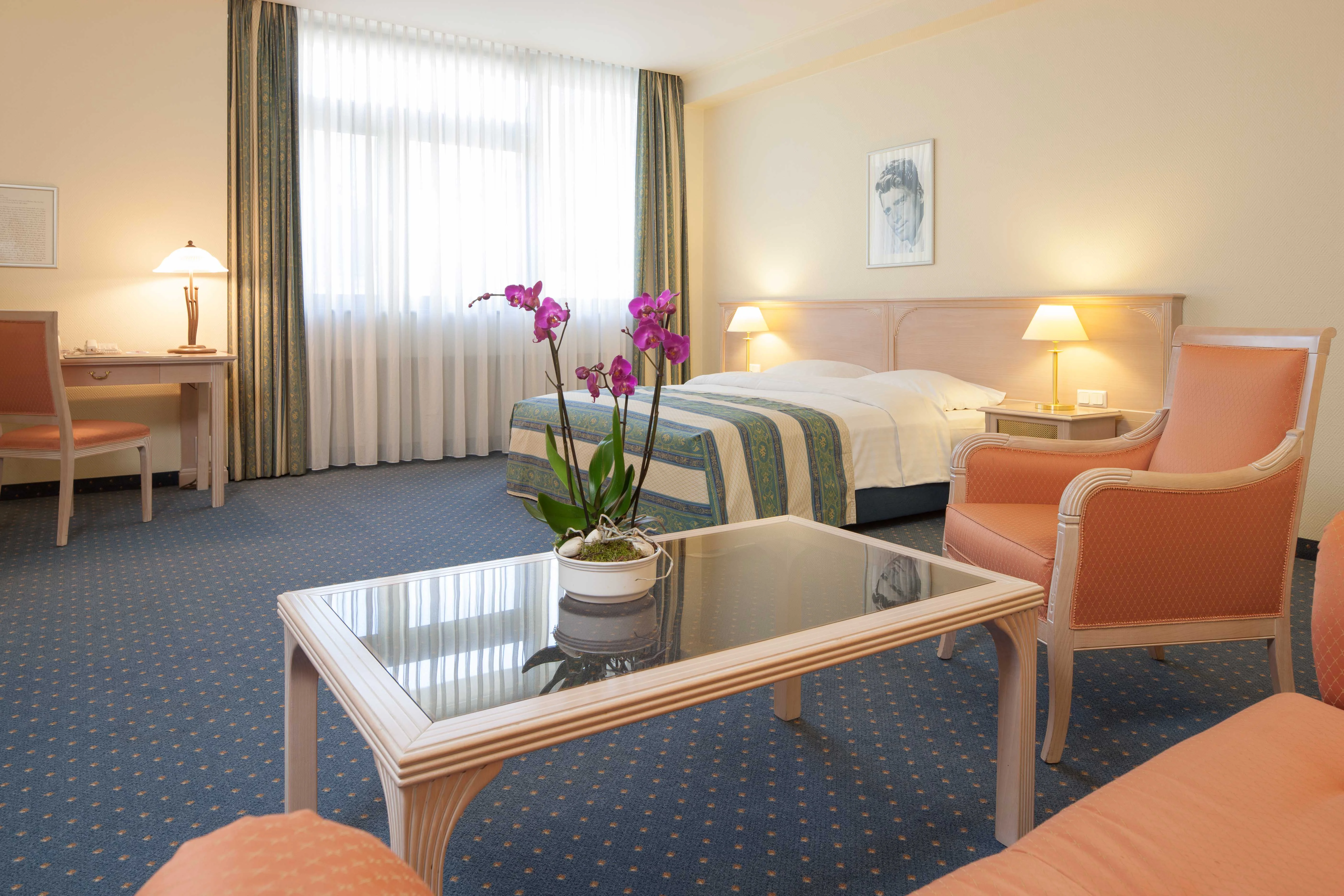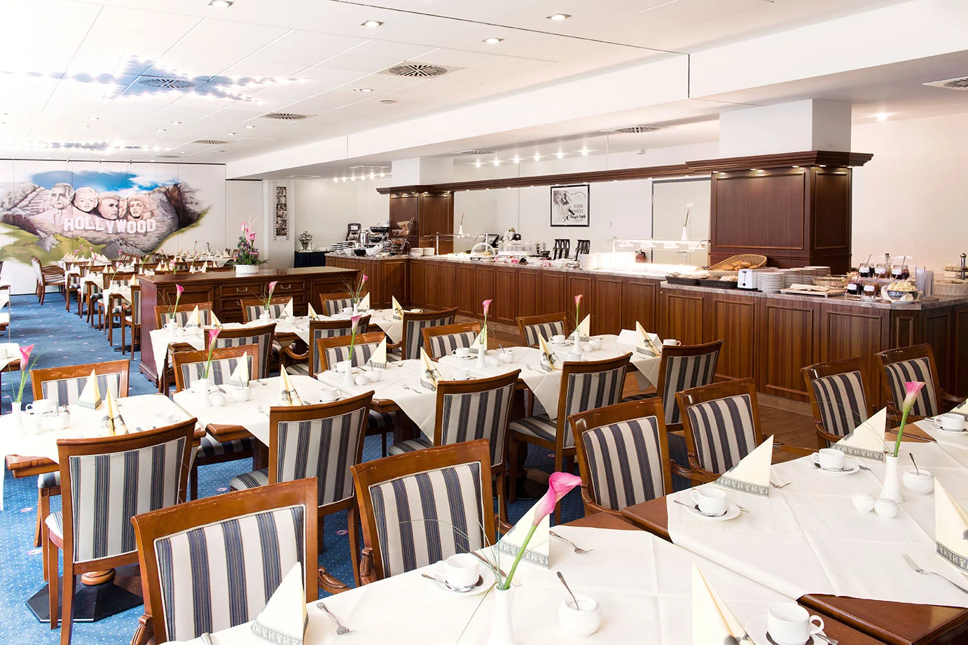 Das Hollywood Media Hotel Berlin, direkt auf dem Kurfürstendamm gelegen, ist eine Hommage an den Film, internationale Stars und unvergessene Filmlegenden. Als Privathotel überzeugt das mit 4 Sternen ausgezeichnete Haus durch ein individuelles und familiäres Ambiente und ist gleichwohl beliebt bei Städte- sowie Geschäftsreisenden. Die Lage des einzigartigen Themenhotels direkt auf der bekannten Shoppingmeile, in unmittelbarer Nähe zum Zool. Garten, der berühmten Gedächtniskirche und nur wenige Minuten vom Potsdamer Platz entfernt, schafft den idealen Ausgangspunkt für eine Entdeckungstour durch die pulsierende deutsche Hauptstadt. Die dem Hotel angeschlossene Bar Callas ist ganz im Stil der American Sixties eingerichtet. Bei einem Cocktail unter dem schwarz-weiß Portait von Audrey Hepburn in "Breakfast at Tiffany's" schweift der Blick auf das lebendige Treiben des Kurfürstendamm.