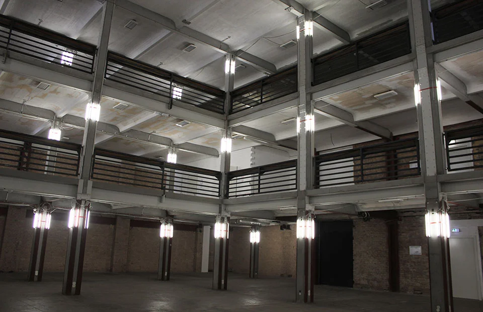 Baustelle und zugleich Raum für Kunst, Konzerte und Veranstaltungen – so präsentiert sich das Kühlhaus Berlin auf sieben Etagen mit einer Vielzahl außergewöhnlicher Räume und architektonischer Situationen, mit insgesamt über 5000 qm. Ein Ort der Begegnung und Kreativität, der offen ist für Partnerschaften, Impulse, Ideen – offen für die Stadt.