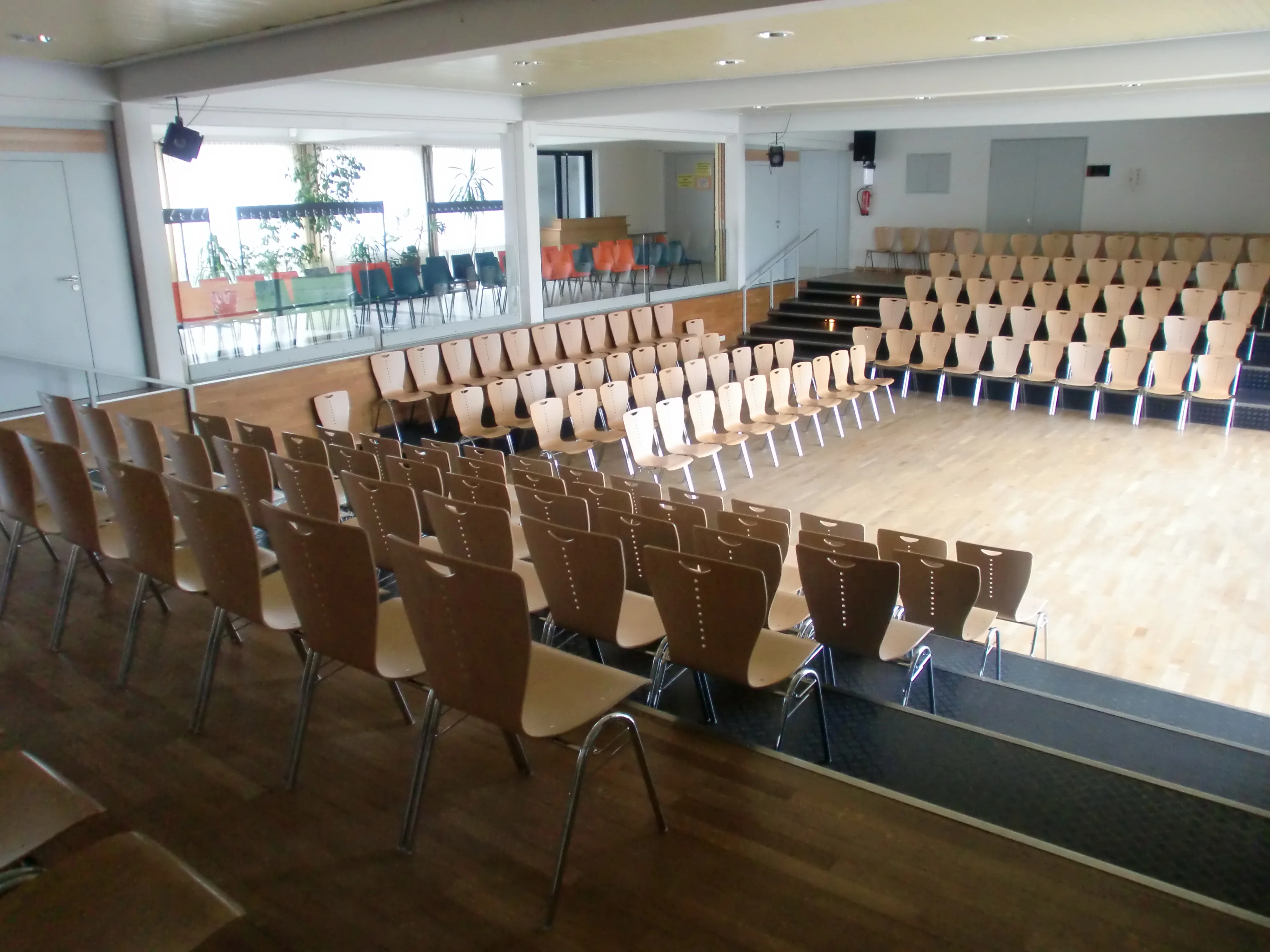 Das Haus verfügt über zwei Tagungs- bzw. Aufenthaltsräume für max. 20 Personen. Außerdem steht ein Saal mit Bühne für bis zu 200 Personen zur Verfügung.
