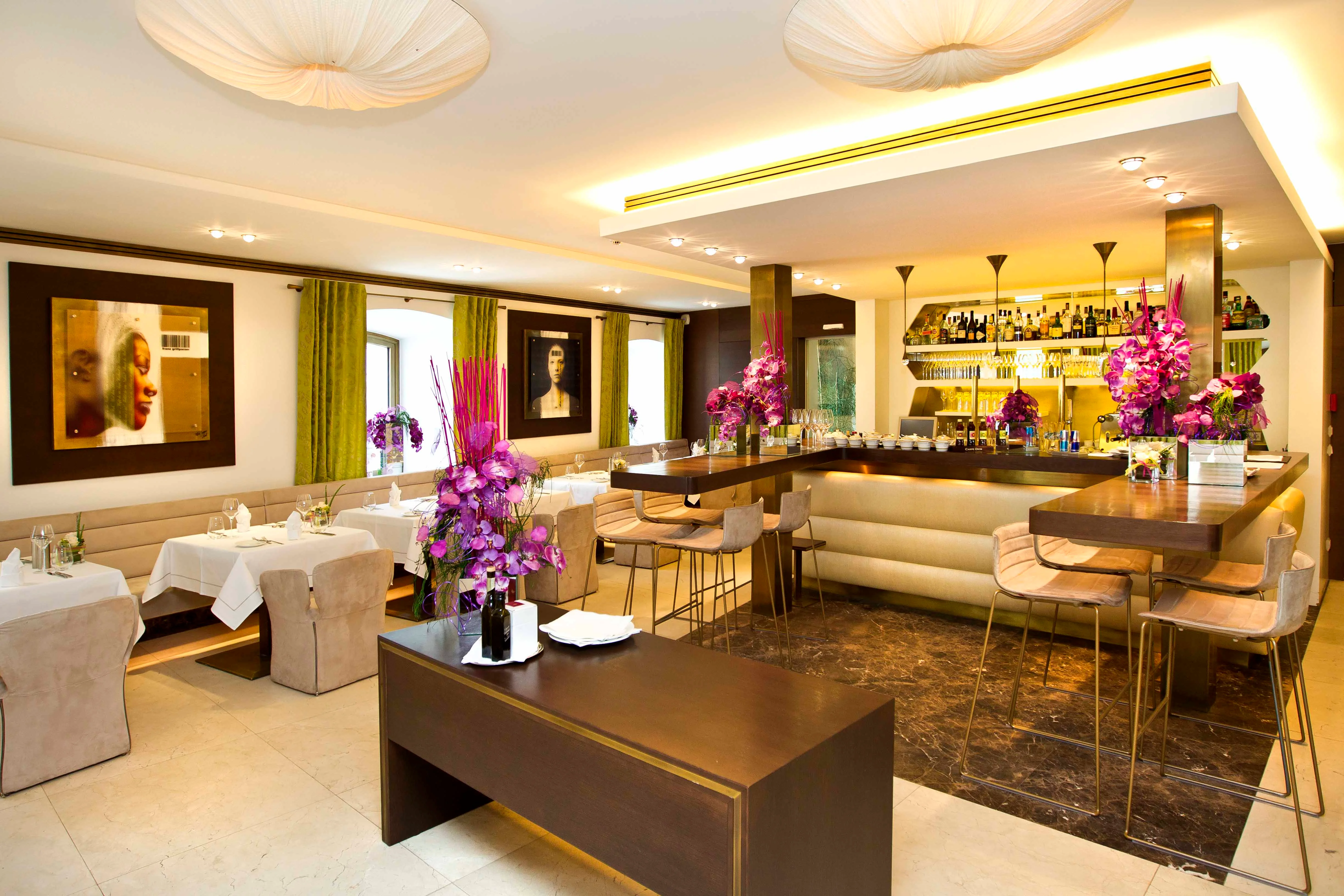Hier finden Sie als unser Gast alle Annehmlichkeiten, die Ihren Aufenthalt zu einem unvergesslichen Erlebnis gestalten. Herzlichkeit ist unsere Maxime und Gastfreundschaft unser Ansporn, wenn wir bestrebt sind Ihren höchsten Ansprüchen und unseren verliehenen 5 Sterne zu entsprechen. Die Liebe zum Detail spiegelt sich in allen Bereichen unseres Hotels wider: exklusiver Service, außergewöhnliches Design und höchster Komfort sind die Vorzüge, die Sie jeden Augenblick spüren und die diesem Hotel seine besondere Note geben. Ausgezeichnet mit 2Hauben von Gault & Millau 2014 Die Gourmets genießen in unserem Michtraucher-Restaurant auch kulinarisch auf höchstem Niveau: Im Iris Porsche Restaurant (ausgezeichnet mit 2 Hauben von Gault & Millau 2014) widmen wir uns dem Genuss in allen Variationen mit höchster Aufmerksamkeit. Beste regionale Erzeugnisse, sowie internationale Edelprodukte finden im Iris Porsche Restaurant eine raffinierte Vollendung. Hotelbar "Sixty7" ist unser Raucherbereich Unsere Hotelbar "Sixty7" ist ein beliebter Treffpunkt für Jung und Alt. Die Bar wurde erst im Sommer 2010 dazugebaut und mit einem großen Fest eröffnet. Ausschließlich in der Bar "Sixty7" darf geraucht werden, da der rest des Hotels ein absolter Nichtraucher-Bereich ist.