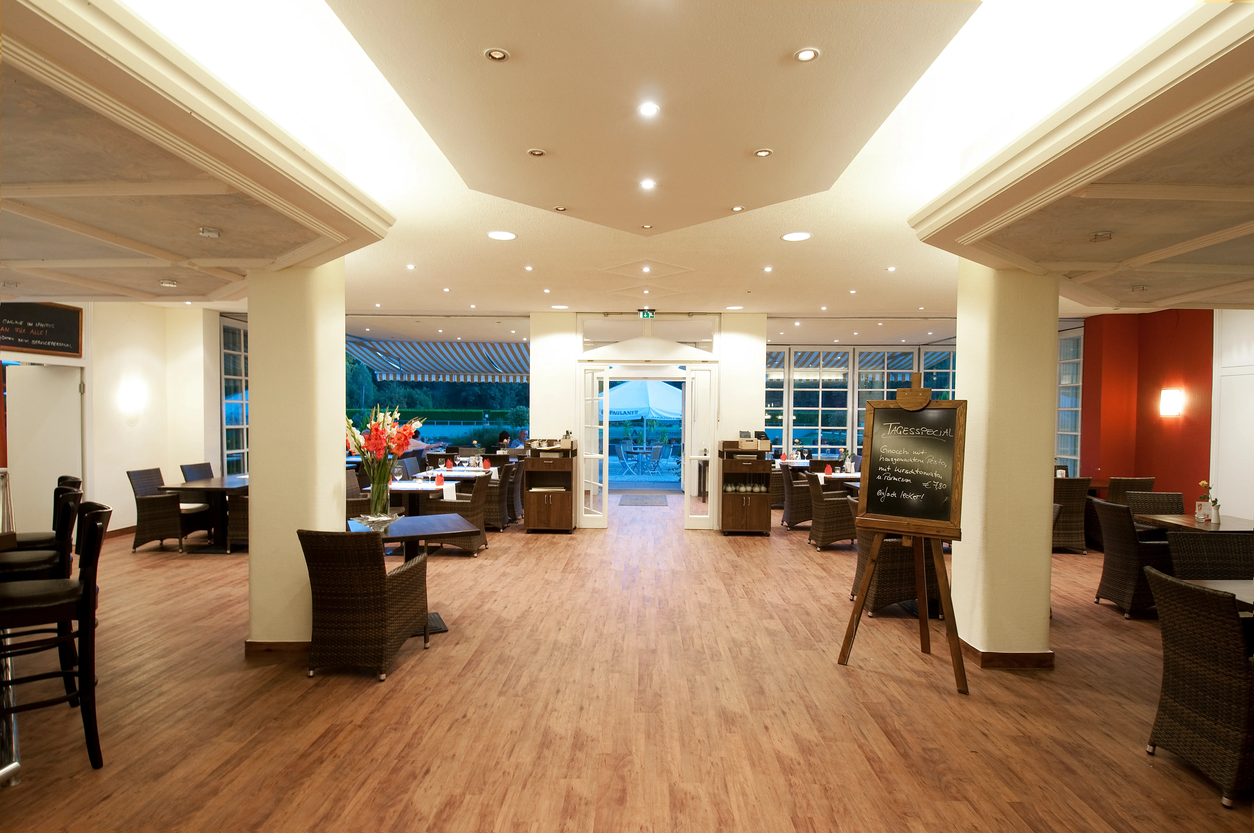 Willkommen auf der Anzeige unseres Restaurants Iphitos, welches an einem schönen Plätzchen direkt neben dem englischen Garten in München liegt. Dieses, zu einem Tennisverein dazugehörige Restaurant, kann gerne für ein Event ganz nach Ihren Vorstellungen und Wünschen als Veranstaltungsort genutzt werden. Das Restaurant bietet eine Vielzahl von leicht mediterranischen Speisen sowohl eine große Auswahl von Getränken zu jedem Anlass. Daher können die Räumlichkeiten auch sehr flexibel genutzt werden und so wird aus einem Restaurant auch gerne einmal ein Tanzlokal. Räumlichkeiten Die Räumlichkeiten im Iphitos sind sehr ergiebig. Zu einem Hauptbereich direkt nach dem Eingang kommen auch noch ein Konferenzraum, eine Lounge und ein großzügiger Außenbereich dazu, welche ganz nach Ihren Vorstellungen genutzt werden können. Anfahrt Vor dem Iphitos bieten sich auch hervorragende Parkmöglichkeiten für bis zu 100 Autos an. Sonstiges Falls wir nun Ihr Interesse geweckt haben, Ihre Veranstaltung bei uns stattfinden lassen zu dürfen, bzw. für weitere Fragen etc. kontaktieren sie uns gerne via Telefon oder E-Mail. Wir freuen uns, Sie hoffentlich bald bei uns begrüßen zu dürfen. Ihr Iphitos Team