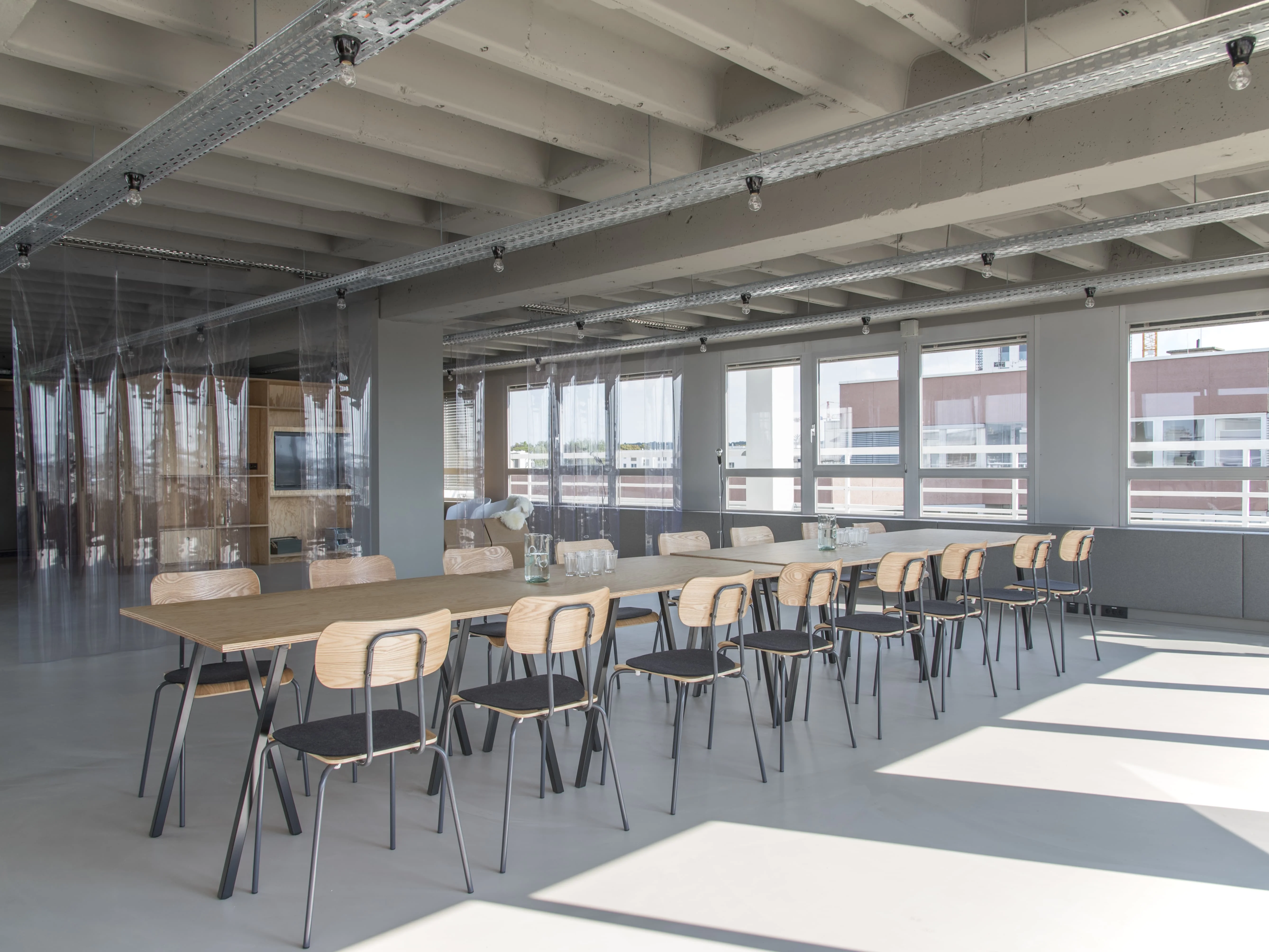 Unsere Idee: “eine Werkstatt” - ein handwerklicher Ort voller Kreativität inmitten des turbulenten Stadtlebens! Die Atmosphäre eines einzigartigen Lofts, das sich wie die eigenen vier Wände anfühlt mit einem spektakulären Ausbllick über die Stadt. Ihr bucht nicht nur eine voll funktionstüchtig ausgestattete Fläche, sondern einen Raum mit einer Seele. meet. create. play. – unser Loft ist die perfekte Location, um wie in einer Werkstatt, Ideen auszuprobieren und neue Dinge gemeinsam zu erschaffen. Die Location mit viel Freiraum! Unsere Loftwohnung mit 360qm sowie fantastischer Terrasse mit 100qm bietet grosszügigen Platz für 5-120 Personen und eignet sich für Workshops, Seminare, Tagungen und Schulungen, Pressekonferenzen, Fotoshootings und für alles, was Unternehmen oder Privatleute sonst noch so auf todschicken, lichtdurchfluteten 360qm im Herzen Frankfurts veranstalten möchten. Dachterrasse mit atemberaubendem Blick auf die Frankfurter Skyline Auf der Dachterrasse könnt Ihr grillen, in der Küche kochen und in unseren Lounge-Ecken ausgelassen relaxen. In unserem Preis ist alles enthalten, was eine vernünftige Bude braucht: hochklassiges, technisches Equipment (z.B. TV Flatscreens, Sonos Soundsystem, WiFi, etc.) und eine bestens ausgestattete Küche (Getränke inklusive, BBQ auf der Terrasse).